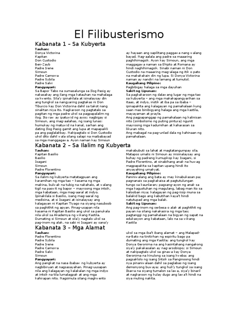 Reviews EL FILIBUSTERISMO SUMMARY (Tagalog) update