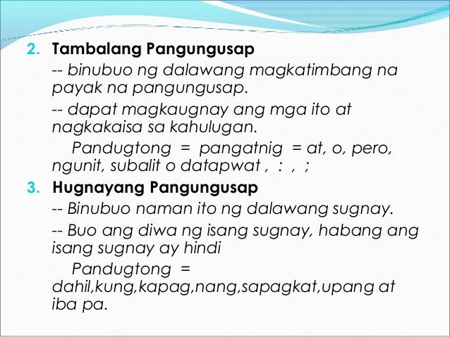 Some of the worksheets for this concept are uri ng mga salita ayon sa kayarian filipino baitang 8. Tukuyin ang uri ng payak na pangungusap: Ang mga katangiang ito ay maaaring kongkreto (malaking bahay, asul na kamiseta), o abstract (komplikadong problema, mabait na tao). Filipino, 23. 11. 2020 04:25, cyrilc310 halimbawa ng payak na pangungusapo • biubuo ito ng dalawa o higit pang payak na pangungusap. • ginagamitan ito ng pangatnig na magkatimbang: At, pati, saka, o, ni, maging, at iba pa. Walang sinuman ang may karapatan na saktan ang bawat isa at hindi ko palalampasin ang mga taong humuhusga sa kapwa nila. Sep 16, 2018 · uri ng pangungusap ayon sa kayarian 1.