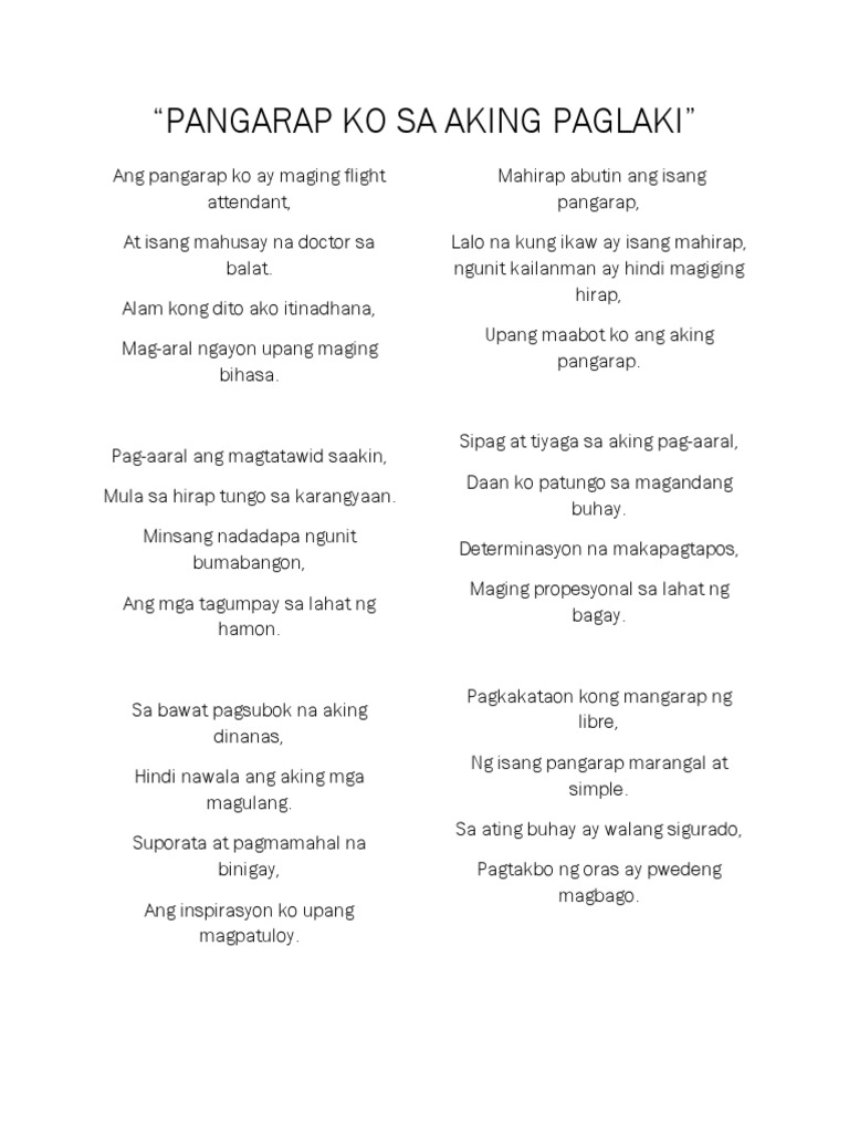 Disin sana'y mayron na akong dangal. Na ihaharap sa'yo at ipagyayabang. Sa panaginip lang ako may pagdiriwang. Yaman at katanyagan sa akin ay wala. Kakisigan ko ay bunga ng isang sumpa. Ang aking ina ang tangi kong tagahanga. Sa panaginip lang ako may nagagawa. Masipag na bata part 2 Create and get +5 iq.