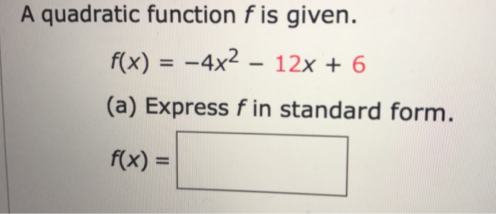 New Solved: A Quadratic Function F Is Given. F(x) = - 4x^2 - 1... | Chegg.com